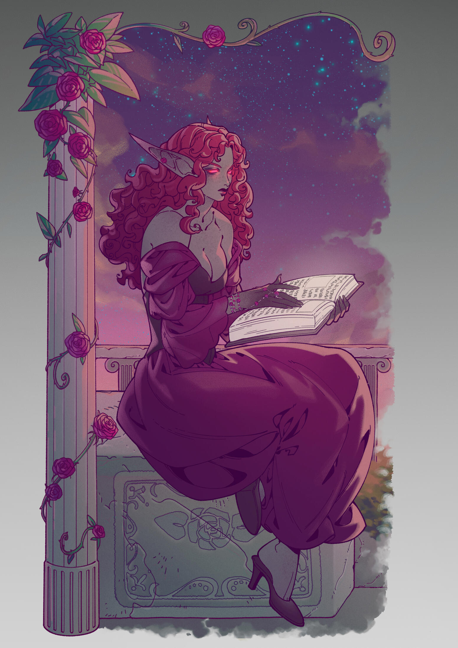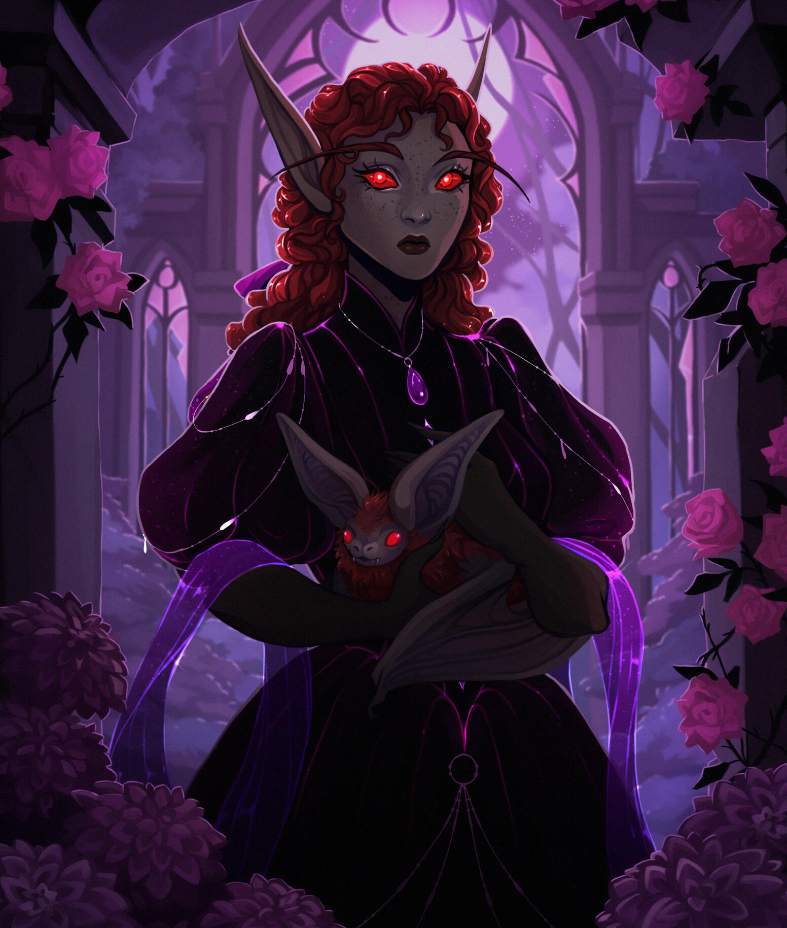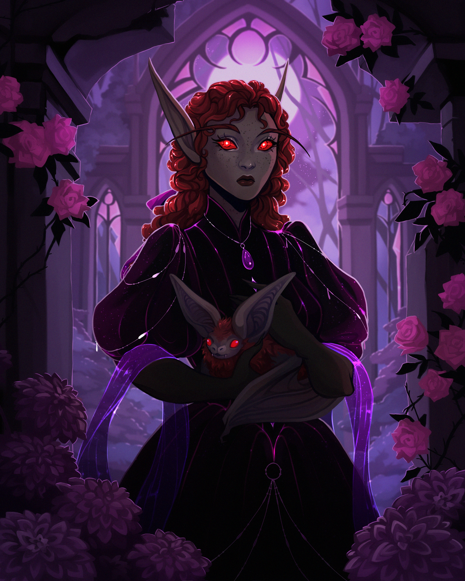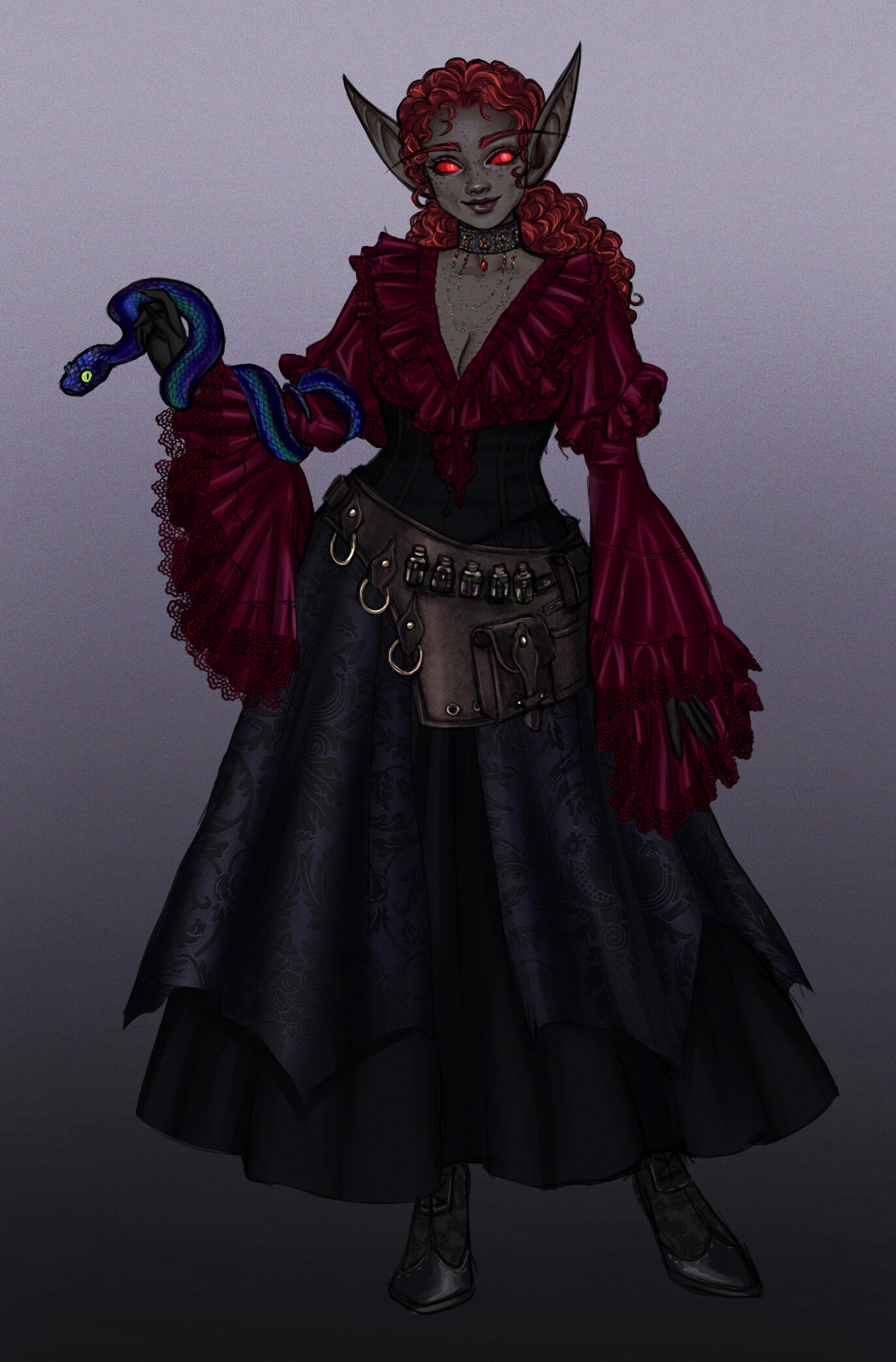 Name: Ambessa HawkflameRace: San'layn (previously sin'dorei)Gender: FemaleAge: 46Birthday: September 24thHeight: 5'3"Weight: 145lbsPhysique: Curvy, softOccupation: ApothecaryWeapons: Stiletto dagger, revolverMagical Practice: Illusions, Flame magic, ArcaneAffiliations: Forsaken, Desolate Council, Royal Apothecary Society, The Thalassian AccordSexuality: Bisexual | Demisexual | MonogamousRelationship Status: TakenBirthplace: Fairbreeze Village, Quel'ThalasResidence: Ironforge / BrillAlignment: Lawful GoodVoice Reference: Lamb (Kindred) - League of Legends