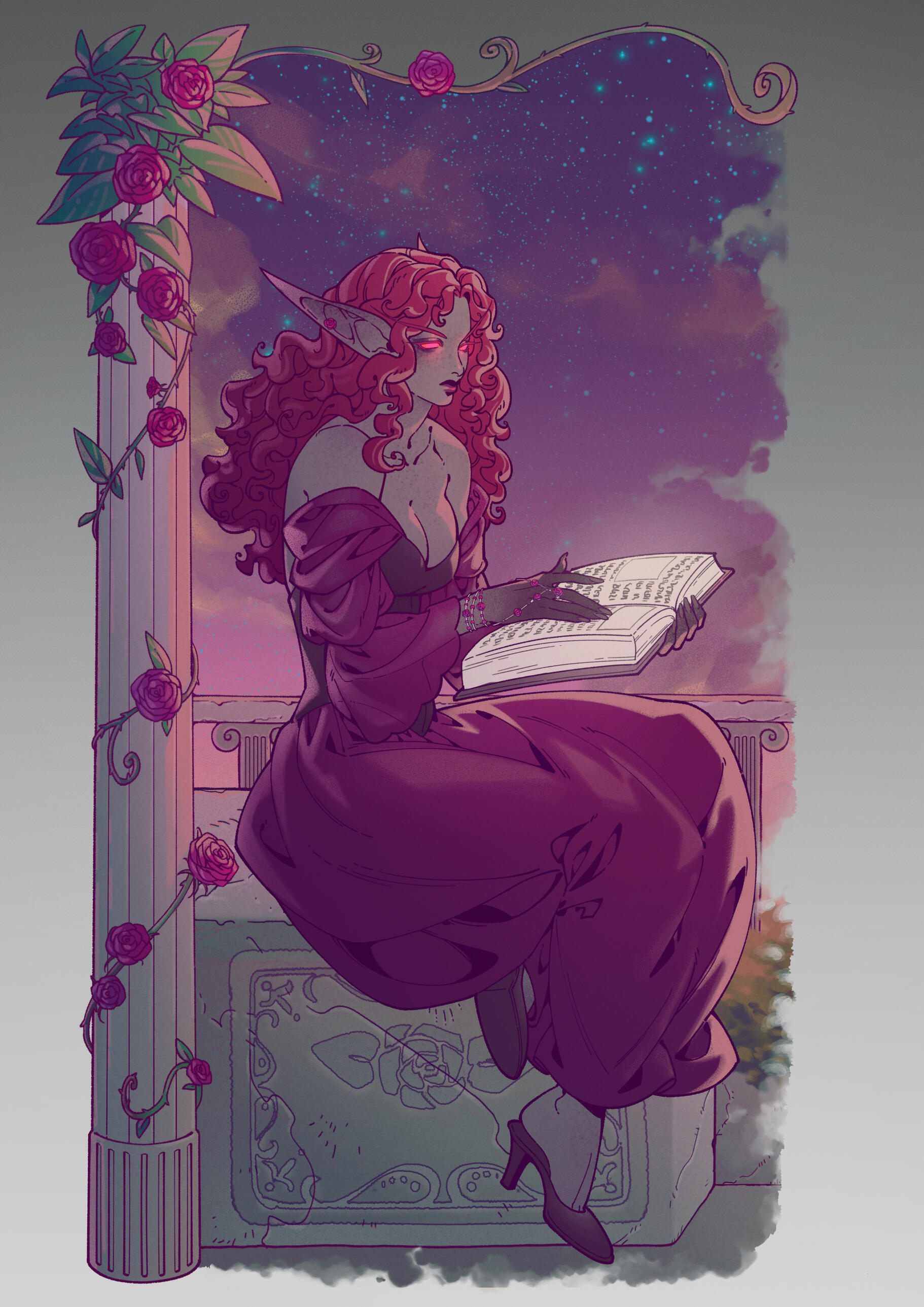 Name: Ambessa HawkflameRace: San'layn (previously sin'dorei)Gender: FemaleAge: 46Birthday: September 24thHeight: 5'3"Weight: 145lbsPhysique: Curvy, softOccupation: ApothecaryWeapons: Stiletto dagger, revolverMagical Practice: Illusions, Flame magic, ArcaneAffiliations: Forsaken, Desolate Council, Royal Apothecary Society, The Thalassian AccordSexuality: Demisexual / MonogamousRelationship Status: TakenBirthplace: Fairbreeze Village, Quel'ThalasResidence: Ironforge / BrillAlignment: Lawful GoodVoice Reference: Lamb (Kindred) - League of Legends