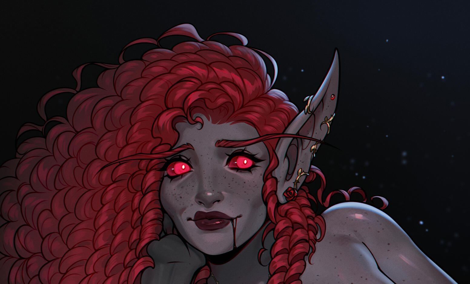 🦇 socialite: taken beneath the wing of an affluent noble, lord Emberflight, Ambessa was rarely seen outside decadent parties and no longer amidst the scholarly pursuits and academia she enjoyed. any social Thalassians may have known her as lord Emberflight's company.