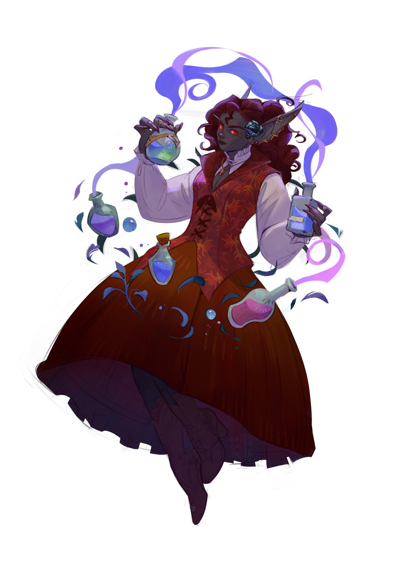 🩸 A new passion: in Undercity, Ambessa began studying alchemy and found a new calling outside of the arcane studying the Blight, potions, and other tinctures. she later became employed by the Forsaken and provided necessities needed to work and survive within Tirisfal.